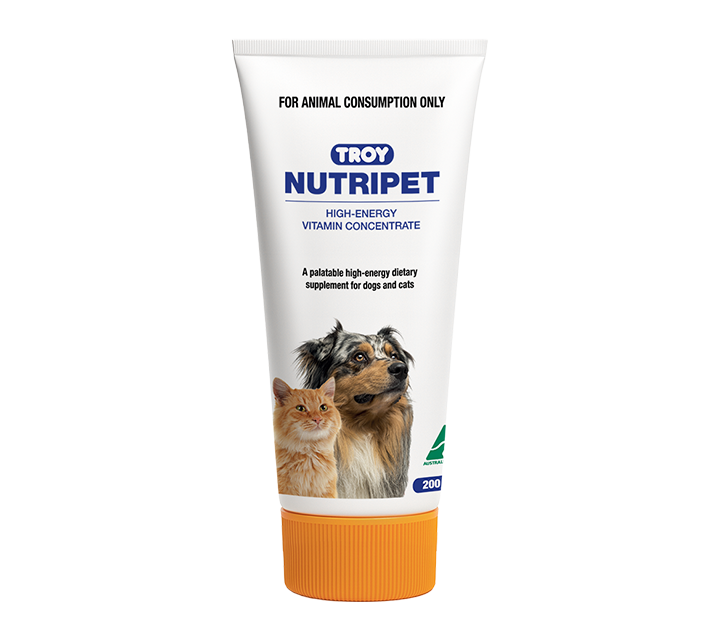 Troy Nutripet is a high energy vitamin concentrate, in a palatable gel. It may be included in the diets of dogs and cats when vitamin or energy levels are low.